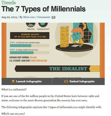 People have been talking about these things “infographics” for awhile now, so I thought I’d get into the game with one on the 7 Types of Millennials from Mint.com.
